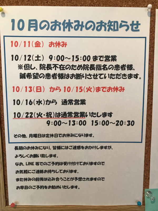 おはようございます! 新道東よこい鍼灸整骨院です。   年末年始のお知らせです。 年内の営業は29日金曜日の12時までの営業とさせていただきます。 年内まだご予約に空きありますので いつでもご連絡 … Continued